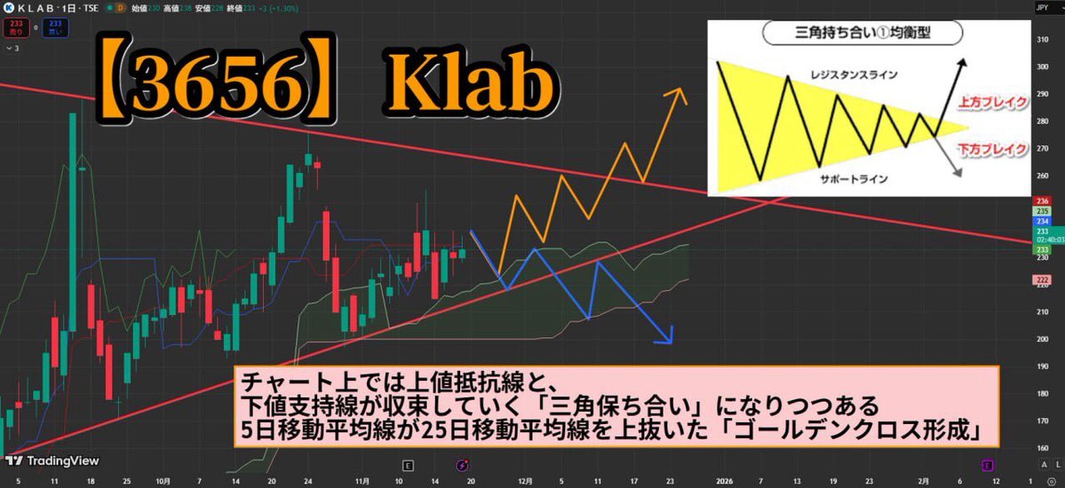 第2の【東京電力HD】と言っても過言ではない日本株 KLab(3656) 株価は224円。この銘柄は、東京電力や大黒屋が急騰し続けている形と全く同じ「上昇シグナル」を示しています。 つまり、時間が経てば株価は1000円を狙える銘柄です🔥 利確・損切りを含む戦略については、「いいね」とリプライをしたフ pic.x.com/ztAjKESYid