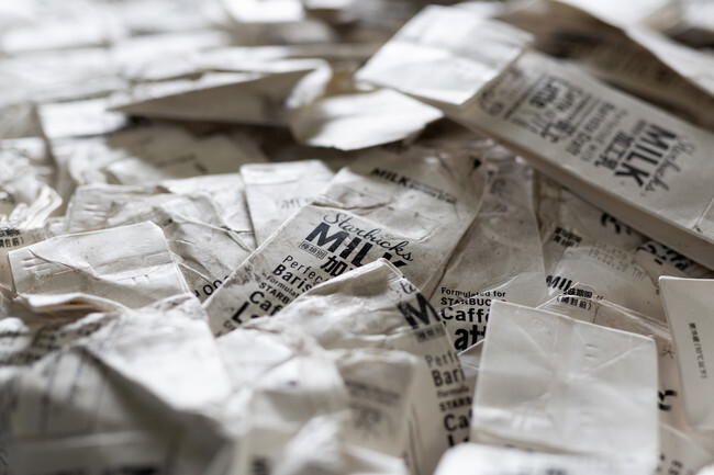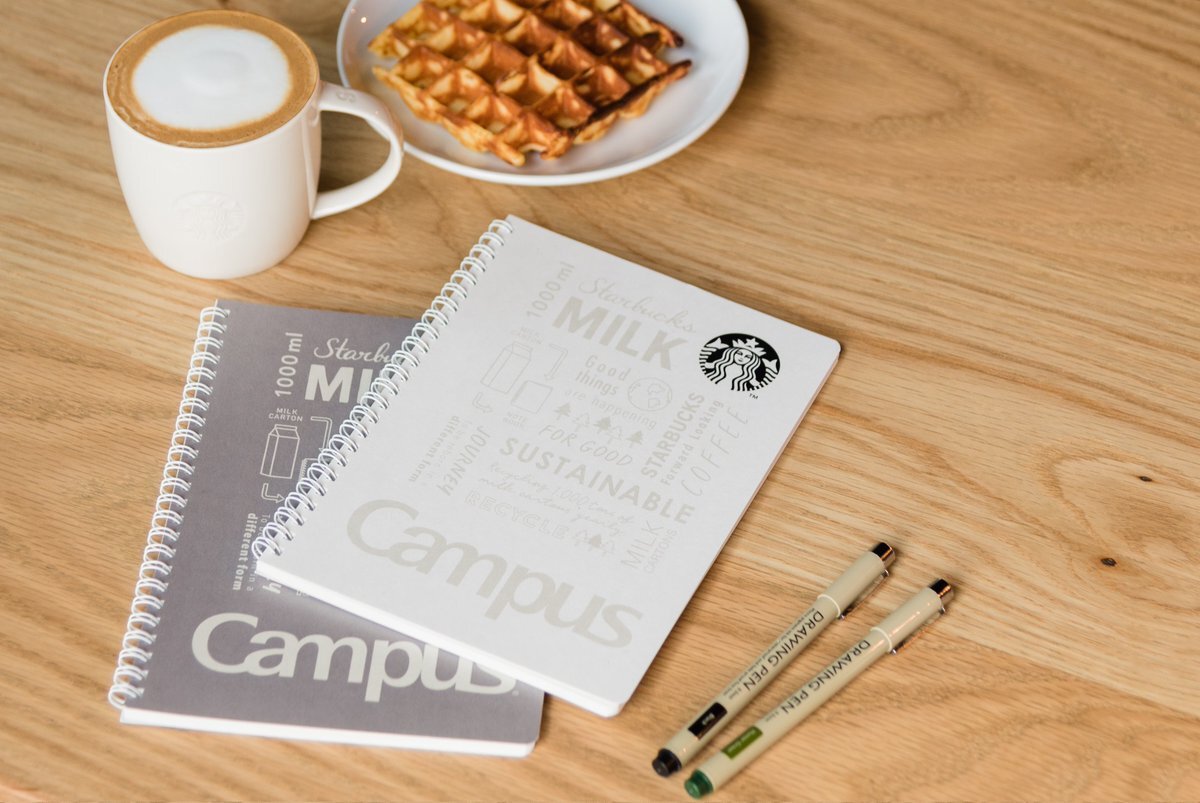 スターバックスの店から出る牛乳パックの量は年間1,000トン。コクヨさんとのコラボレーションでキャンパスノートへとリサイクル。各地のスターバックスで販売中です。有名企業同士で持続できるさりげない環境への取り組みはもっと増やしていきたいなと。ちなみにキャンパスノートって滋賀県生まれ。 pic.x.com/apTB1RwtZg