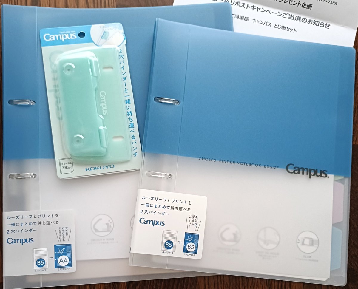 ヨドバシさんのプレゼント企画で当選し、KOKUYO Campusのとじ勉セットをいただきました! 穴あけパンチが薄くて軽くて良い︎︎👍🏻 #stationery pic.x.com/Fg2e1w5wkB