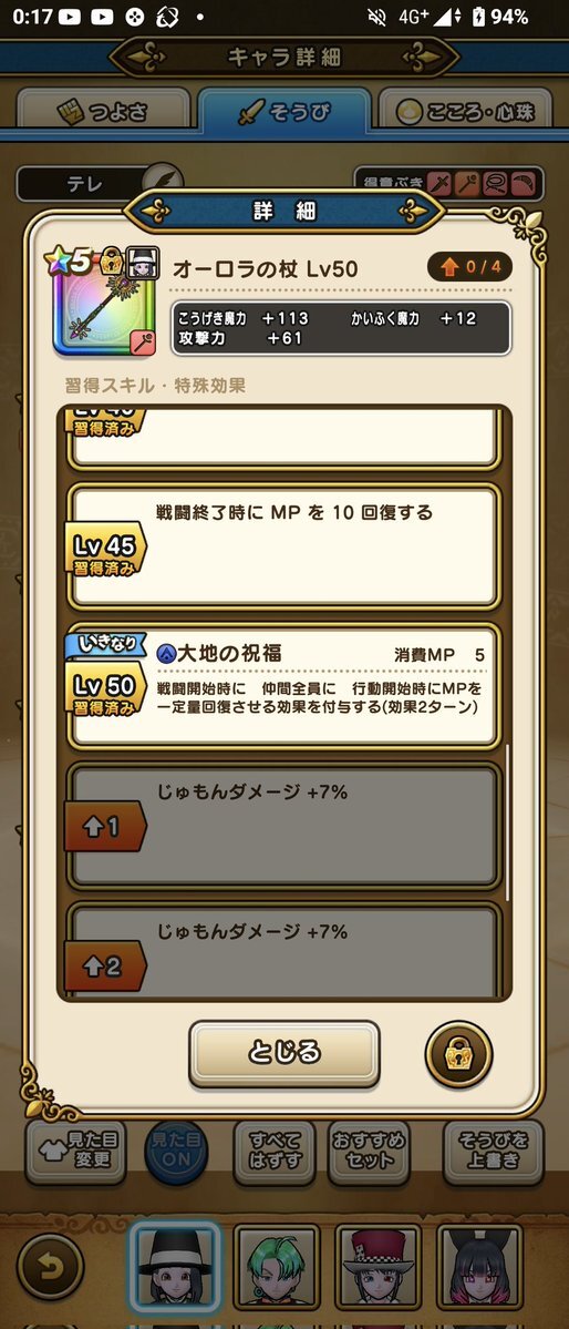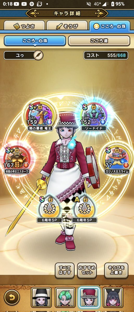 ダークアイで回復するのははぐれエリアで最も攻撃が弱いから(コイツとはぐれ以外は全員痛恨持ちなのでしぬ😅)ボレロ+ビースト(MP-15)で発動して、防御×2で毎ターンMP+80、ふしぎなおどりは完全無駄行動なので気にしない。寧ろ甘い息で回復効率落ちるのが怖いのでロト鎧+目覚ましリングつけとけば完璧👍