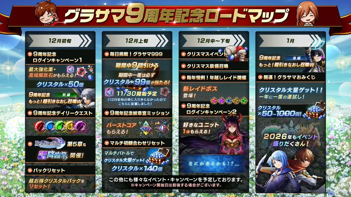 ✨【9周年!超感謝祭!】公式生放送 💫9周年ロードマップ大公開! 9周年記念ログインキャンペーンや超感謝キャンペーン『グラサマ999』などが登場! youtube.com/watch?v=B5DVsI… ■RPキャンペーン開催中 このポストをRP! 💎最大50個全員プレゼント! #グラサマ生放送 #グラサマ pic.x.com/HBKCrU8jmd