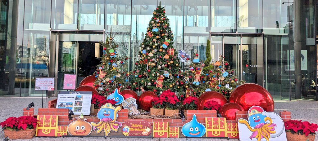 PASONA前のドラクエアイランドツリー可愛すぎて卒倒しそう!!!ことしはぬいぐるみいっぱいついてて可愛い〜〜〜〜🎄🎄🎄🎉🎉🎉🎄🎄🎄 pic.x.com/6Kx43UvTej