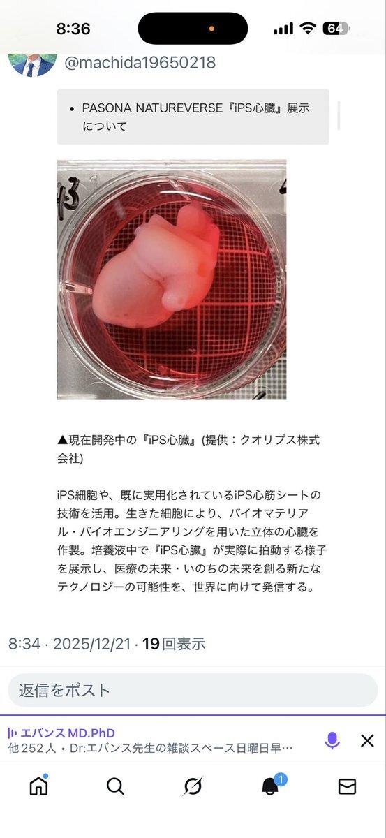 ### PASONA NATUREVERSEの「iPS心臓」展示を分かりやすくまとめ 大阪・関西万博(2025年4月13日~10月13日)のパソナグループパビリオンで大人気の展示です。総来場者215万人超(万博閉幕後時点)の目玉で、多くの人が「生命の神秘を感じた」「医療の未来に感動」と絶賛! #### 1. x.com/machida1965021…