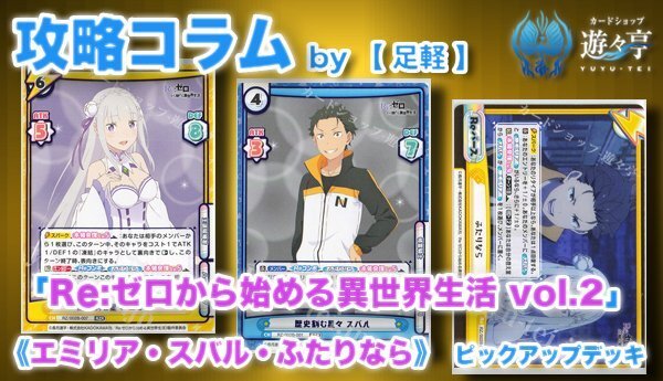 【遊々亭 Reバース 新規ブログ公開!】 更新者:”足軽”さん 『Re:ゼロから始める異世界生活 vol.2』より今回の目玉となる《エミリア・スバル・ふたりなら》を採用したデッキをご紹介です! ぜひご覧ください! #Reバース yuyu-tei.jp/show/re/conten…