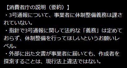 私、中身について意見しているし、具体的な指摘も多々しているのですが、ほぼ無反応ですよ?TFAさんは。 あと、この記事からも分かる様に、TFAさんは法律の条文を一次資料として評価していないのでしょう。 消費者庁の見解に触れたところで、元々の条文読んでなければ解読できませんよ。 x.com/tokyo_factchec…