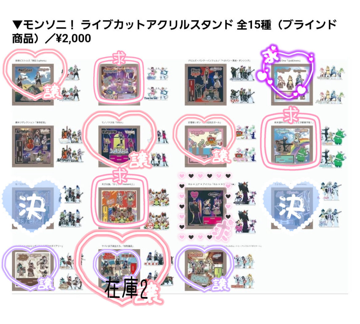 モンソニ アクスタ 交換 再販へ向けて交換募集出しておきます。 🫶仮約束可 📮郵送にてお取引 (求) 画像の物 TFA、終末、えび天、友人用でエンディバ>キルユア (出)画像の物 ヤバ女1 とダイナーとメルルンズはエンディバ最優先で交換🙏 お心当たりある方は検索からもお気軽にお声かけください。→→ pic.x.com/MdkbaVcZRm