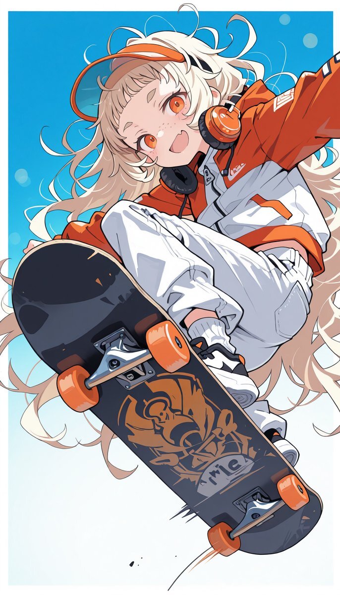 白/オレンジ スポーツウェアのスケボー金髪少女 「見て見て~格好いい?」 "She's crushing that trick right now!" (タップ/クリックで見てね) pic.x.com/5AF9rfqHrL