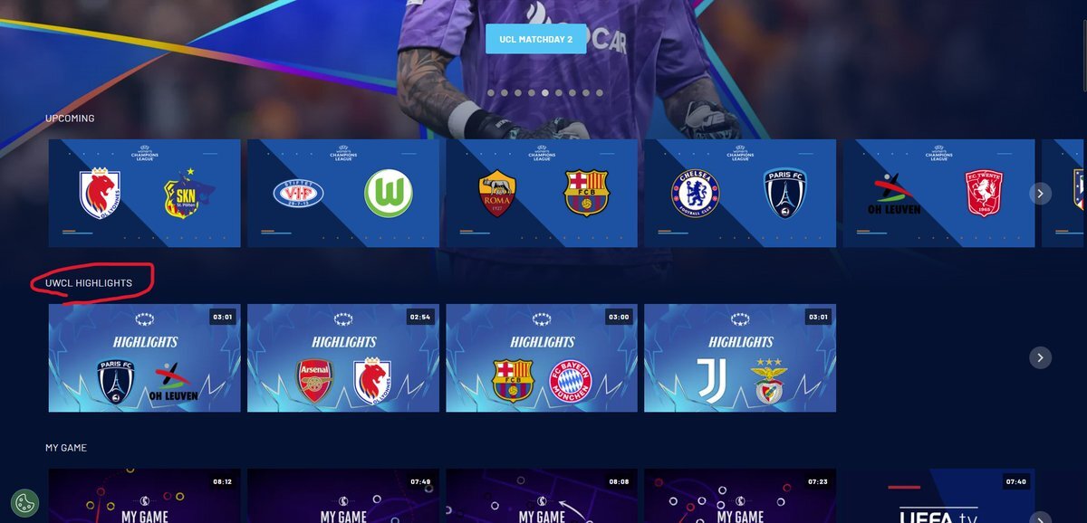 UWCLの試合、試合終了後から24時間後ぐらいにUEFA tvにハイライトがアップされるようです。きのうの未明の試合のハイライトはアップされていて、今日の未明の試合はまだですね。 pic.x.com/MBtnU5ykJQ