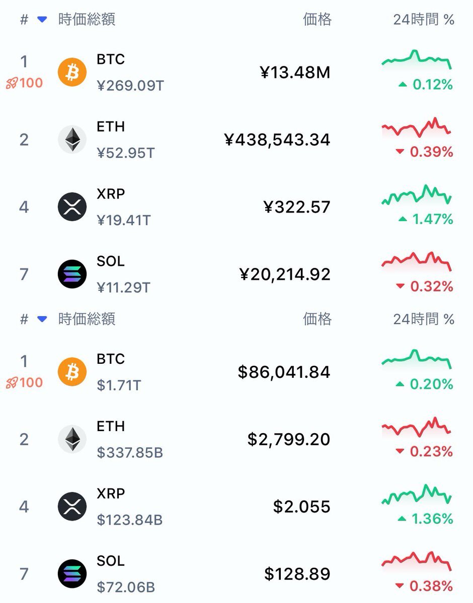 本日のビットコイン、イーサリアム、リップル、ソラナ4通貨のドルおよび円の価格です! pic.x.com/DdtworZYBz
