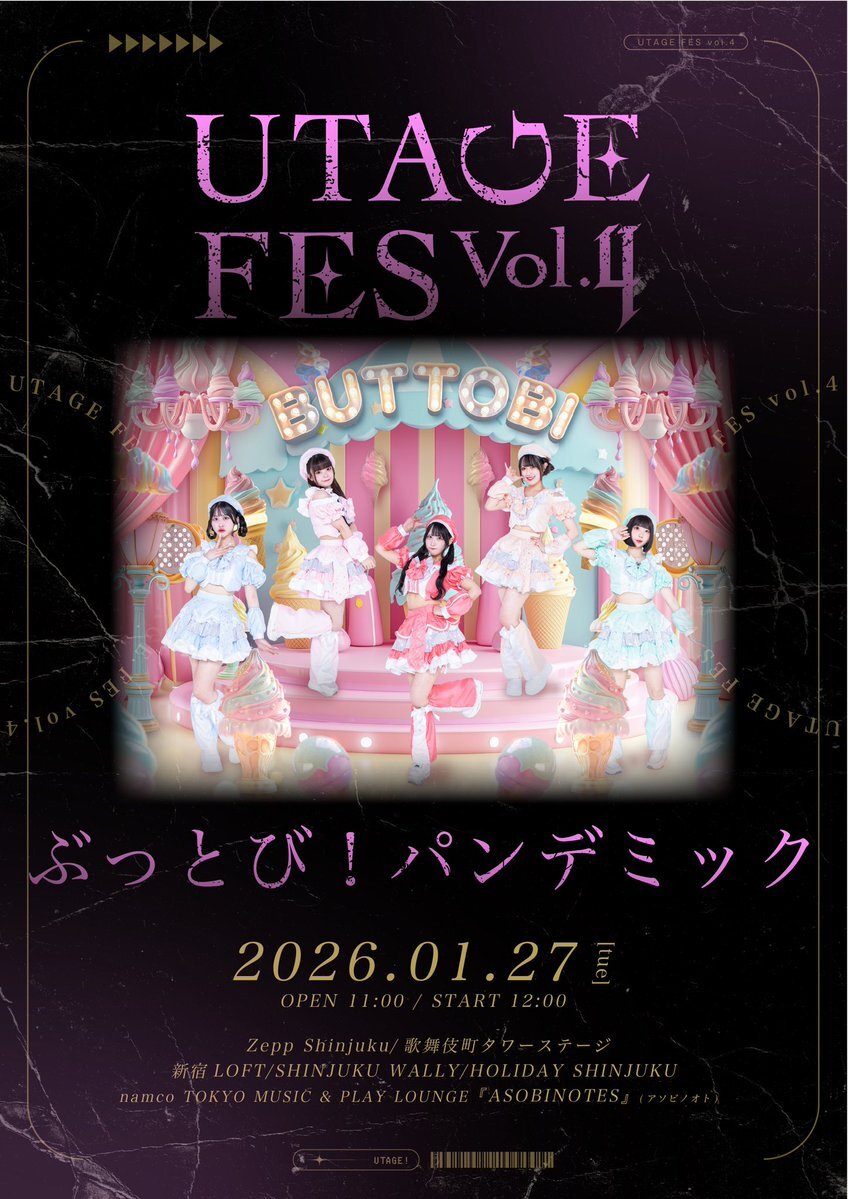 \ UTAGE FES 出演決定.ᐟ.ᐟぶちかまします❤️🔥/ : ✩1/27(火)の #ぶっパンライブ ✩ˎˊ: ▶【 UTAGE FES Vol.4 】 ﹏﹏﹏﹏﹏﹏﹏﹏﹏﹏﹏﹏﹏﹏ 🎫 t-dv.com/0127_UTAGEFES 一般販売:12/13(土)21:00〜1/26(月)23:59 ➜ Zepp Shinjuku/歌舞伎町タワーステージ/新宿LOFT/SHINJUKU