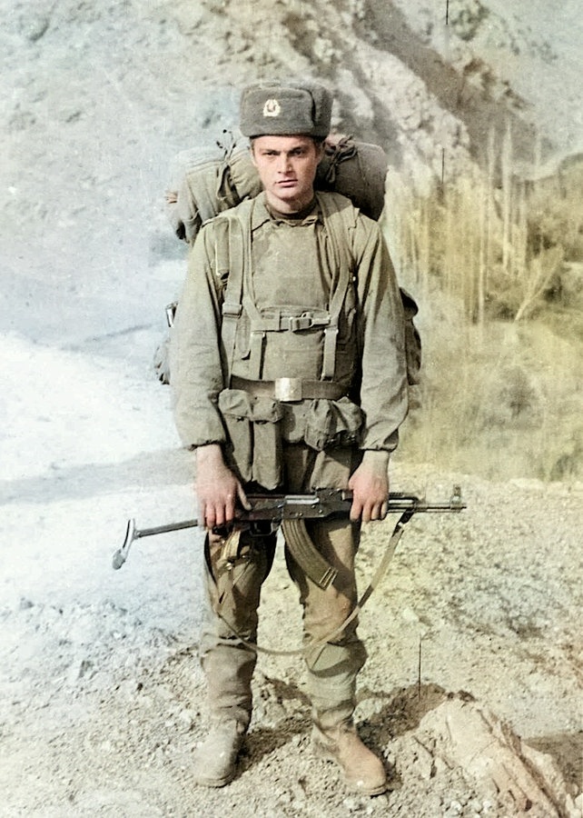 Soviet private from reconnaissance squad of 56th Separate Guards Air Assault Brigade in Afghanistan , 1984.