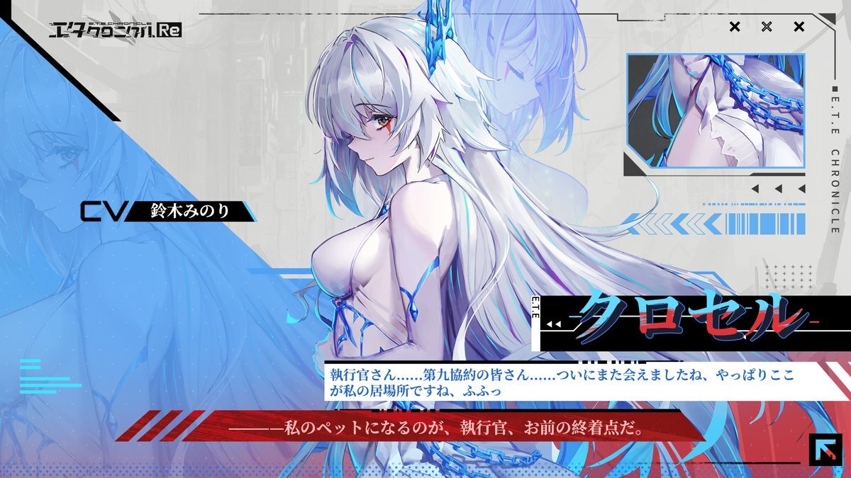 「本当に不思議ですね、つながるたびに、まるで長い間一緒に過ごしてきたように感じます。もう一人の『わたし』にはどんな物語があったのでしょうか……」 ┅┅〚E.T.E情報〛┅┅   ファフニール体:フロストデーモン 通常体:ハバクック タイプ:海戦/重装 協調者:クロセル CV:鈴木みのり pic.x.com/8U6VxhHzwF