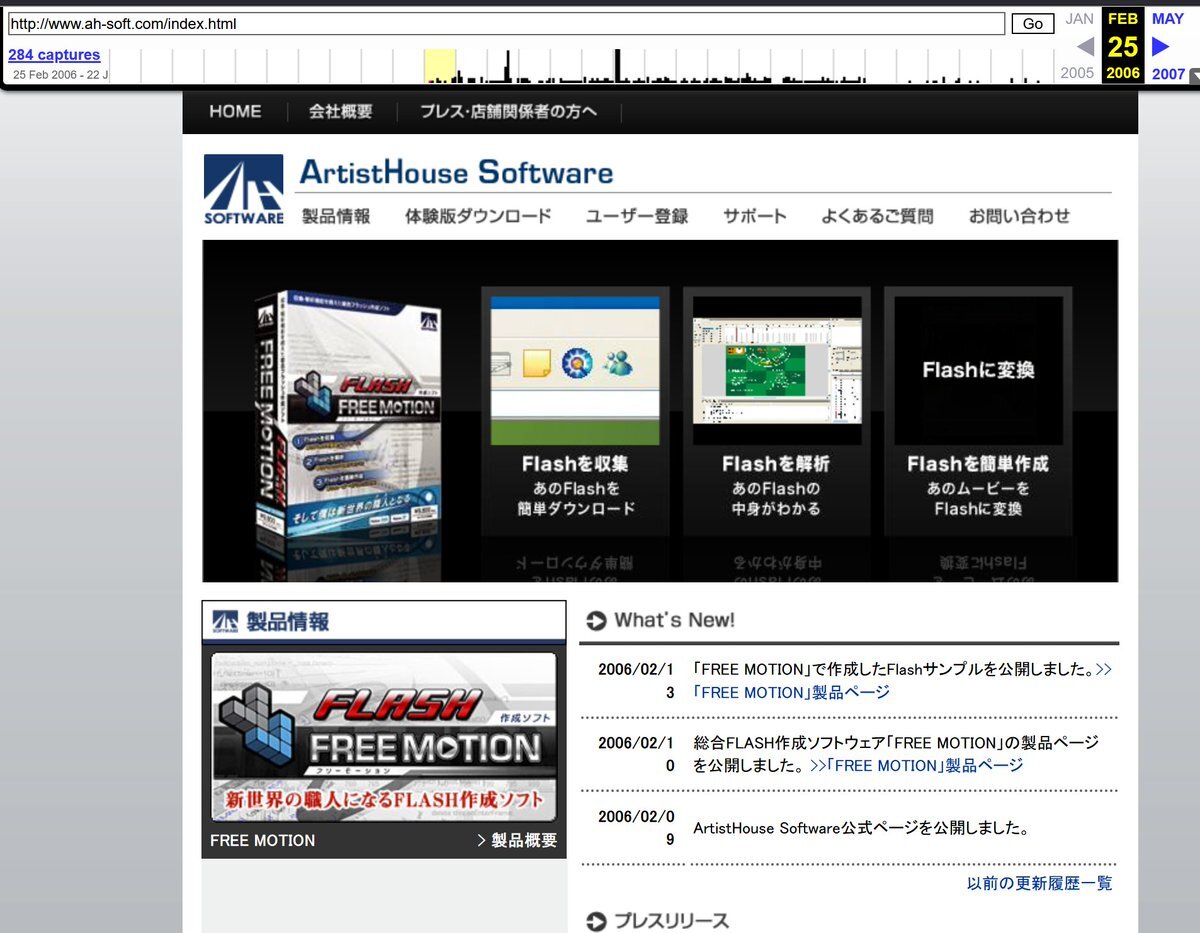 そんなわけで僕たちはインターネットの発掘現場ことINTERNET ARCHIVEに向かった。。。すごいぞ 、売り物がFREE MOTIONしか載ってない。AHSのサイト自体がフリモメンと言っても過言ではない web.archive.org/web/2006022511… pic.x.com/1Izd27fgmY x.com/frimomen/statu…