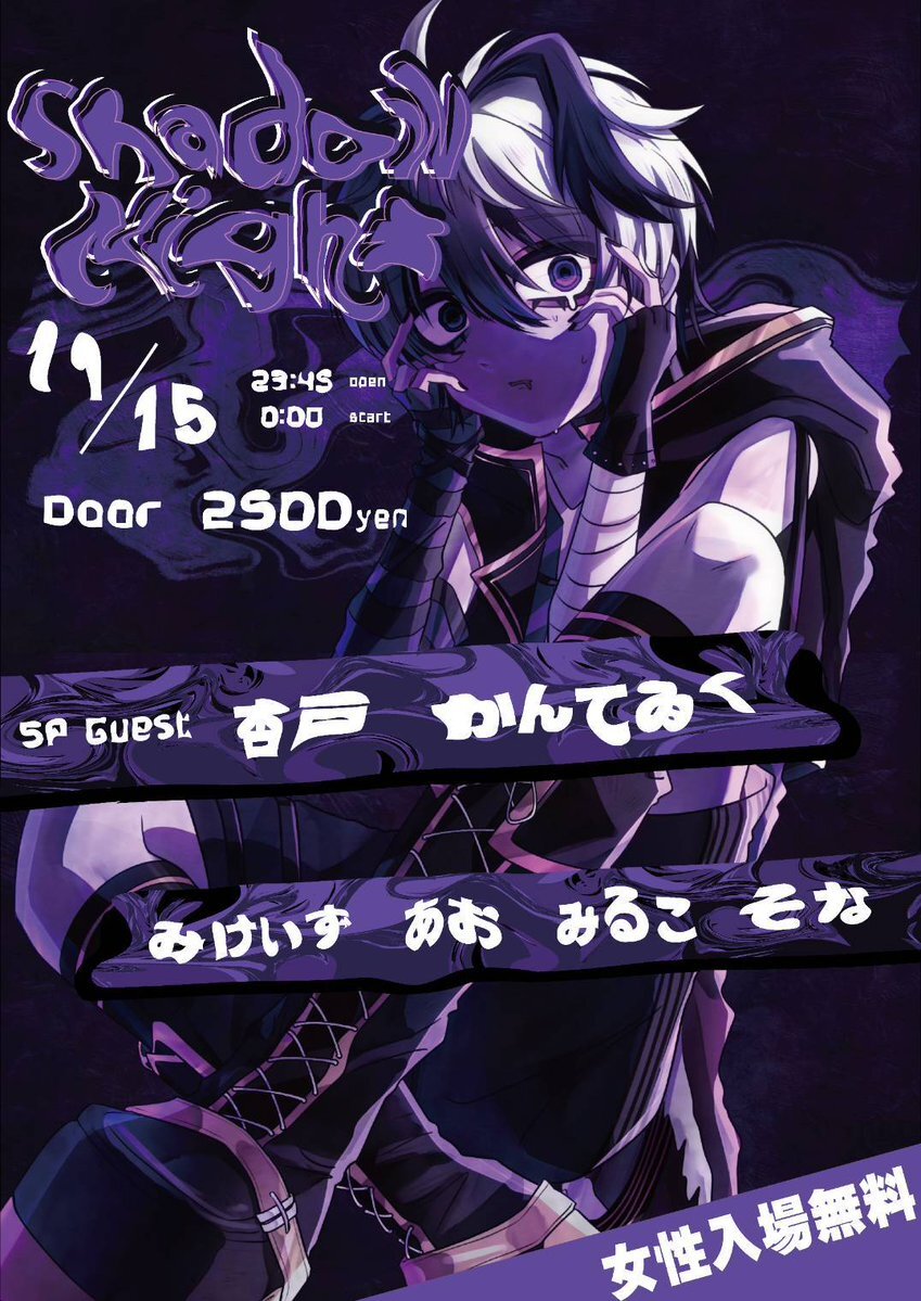 【出演告知】 𝓢𝓱𝓪𝓭𝓸𝔀 𝓝𝓲𝓰𝓱𝓽 🏷️ #シャドナ #ボカブキ 🗓11月15日🌃 🚹2,500円 🚺𝗳𝗿𝗲𝗲 ヤミやります💫😈 学生時代、インスタに不満ストーリーを上げるような黒歴史もってます。イベント楽しみ🥹 11/15は新宿motionで俺と乾杯🍻 pic.x.com/tt7NP9OOO8 x.com/shadow_buki/st…