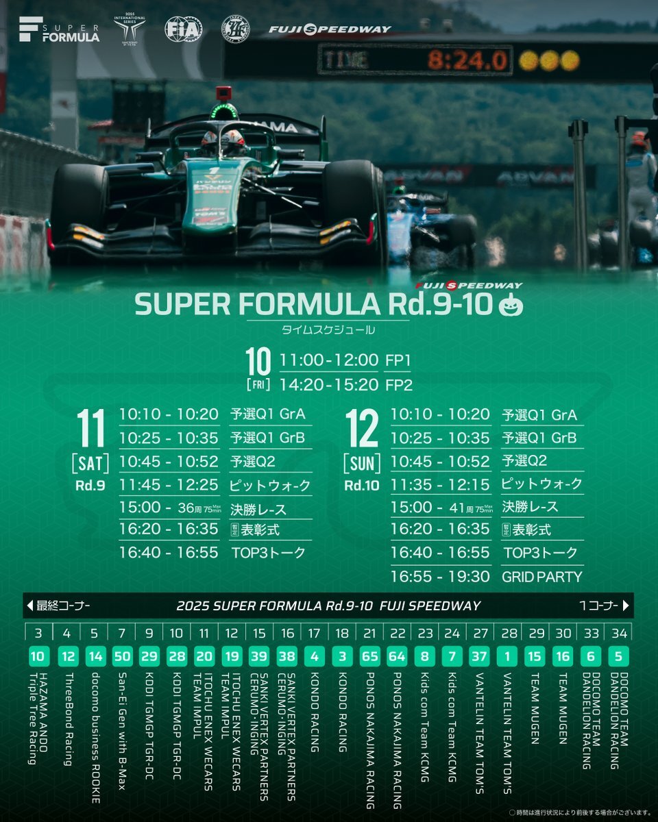 🏎️いよいよ今週末開催! Rd.9-10 FUJI🗻SPEEDWAY 🗓️10.10(金)フリ走行 x 2回 🗓️10.11(土)Rd.9の予選と決勝 🗓️10.12(日)Rd.10の予選と決勝 ハロウィン🎃コスプレイベントや ママケンとラジオ体操、トークショー など、イベント盛りだくさんです📣 #SFormula @fswpress