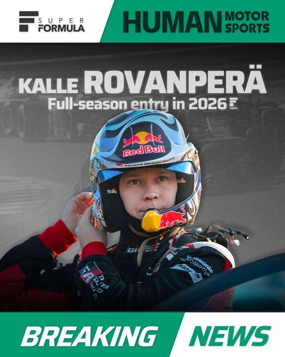 🚨BREAKING │ #SFormula 🚨 Kalle Rovanperä to compete full-time in the 2026 SUPER FORMULA season🏎️ カッレ・ロバンペラ選手が2026シーズンよりSUPER FORMULAにフル参戦を発表しました。