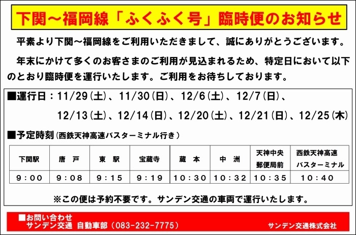 🎄福岡で素敵なクリスマスを!ふくふく号臨時便を運行中です🎁 12/20・21・25は福岡行きの臨時便を運行します✨ きらめく街へのお買い物やレジャーを存分に楽しむなら、ゆったり座れる可能性が高い朝9:00発がおすすめ🚌 nimoca等を使えば乗降もスマート✨ ぜひ快適なひとときをお過ごしください。 pic.x.com/DSYBqzSlYW