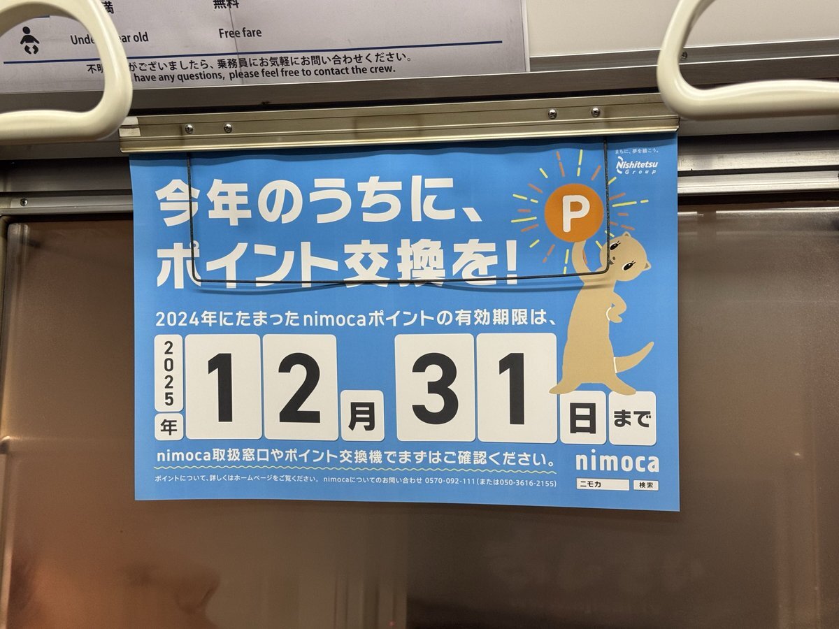 長崎県内の路線バスには無くなって久しいけど(佐賀県内各社はあるんだっけ?)、長崎電気軌道には!なんと!nimocaで乗れば乗車ポイントが付く! だけど交換が必要なので、お忘れなく〜 数十円でも嬉しいものよ x.com/naganyan_net/s…
