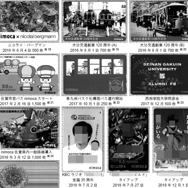 【種類がえぐい】 実はSuicaに次いでデザイン種類が多いのがnimoca。 導入記念から地元ラジオや映画、アニメなどコラボしまくり。 なぜこんなに多種多様なのか、法人向けオリジナルデザインのサービスがあるからなのだよ😳 ↓ pic.x.com/5AWFX5dxC0