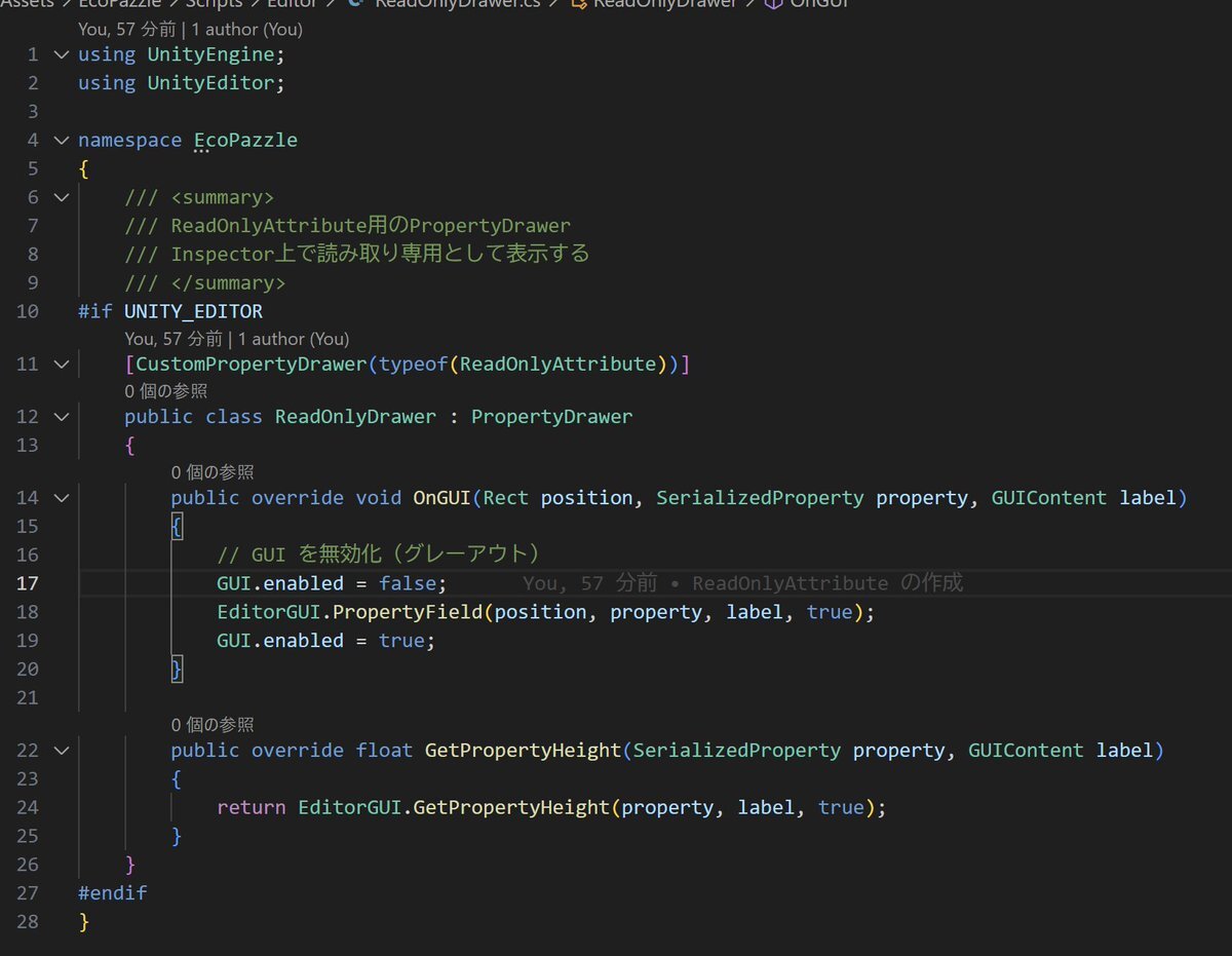 読み取り専用の変数にしたい場合は[ReadOnly]を先頭に書くことで変更できないようにできました。 (例:画像3枚目) pic.x.com/nJ9o1aaylb