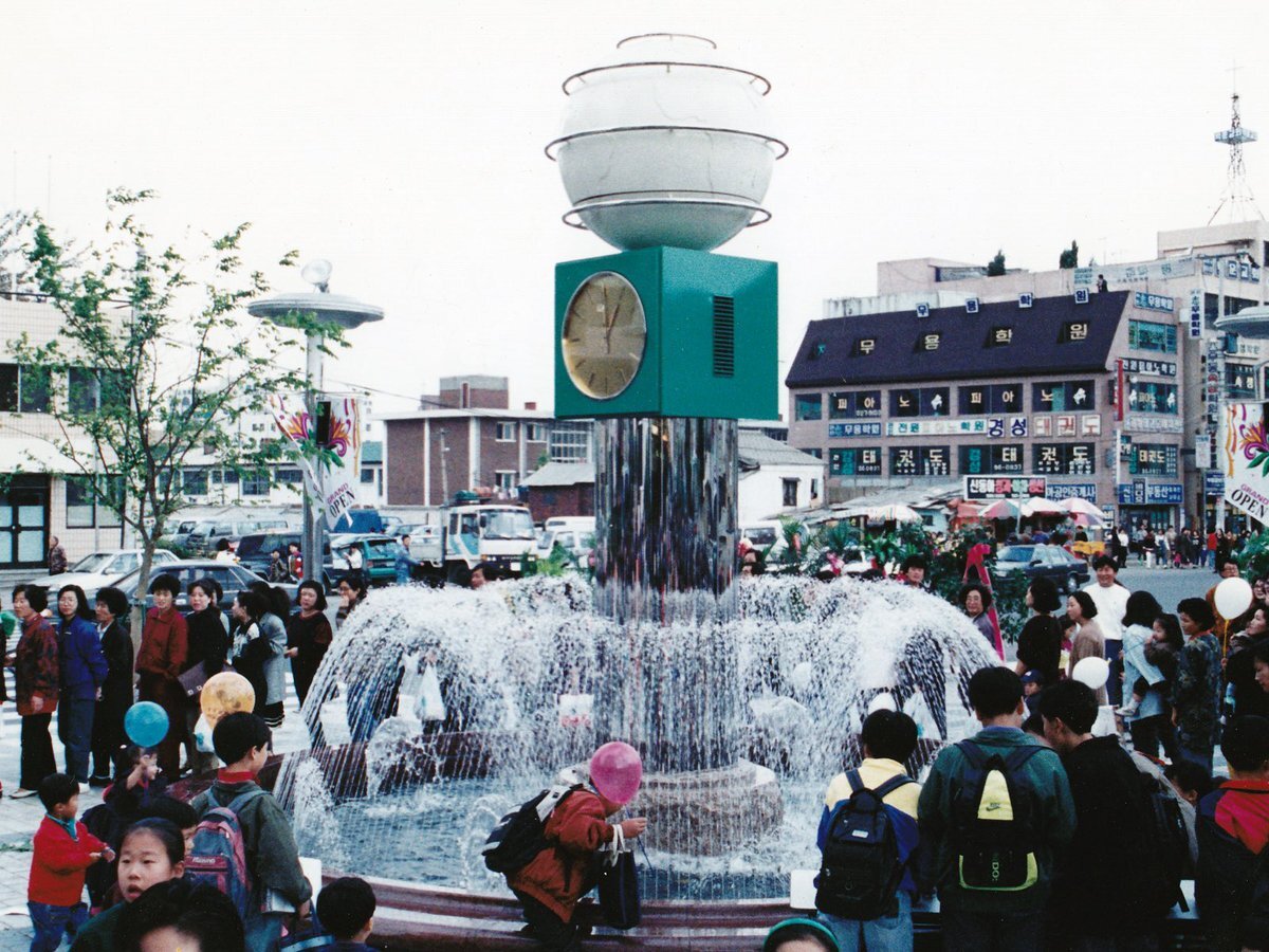 仁川 場所不明(?) 石川商事のHPに掲載。かすがも〜る商店街とベースは一致 筐体の色が異なるのと人形が恐らく韓国の伝統的な衣装を着ているものに変更されている 噴水の中心に時計塔が立っているというのがいかにもバブリーで良い 他で情報を見かけないため短命だったと思われる