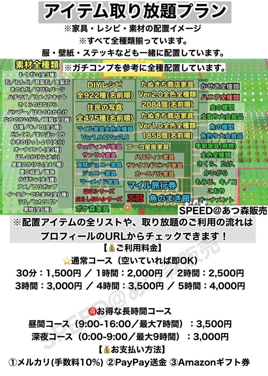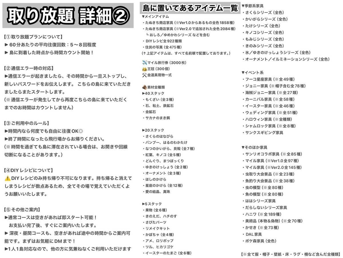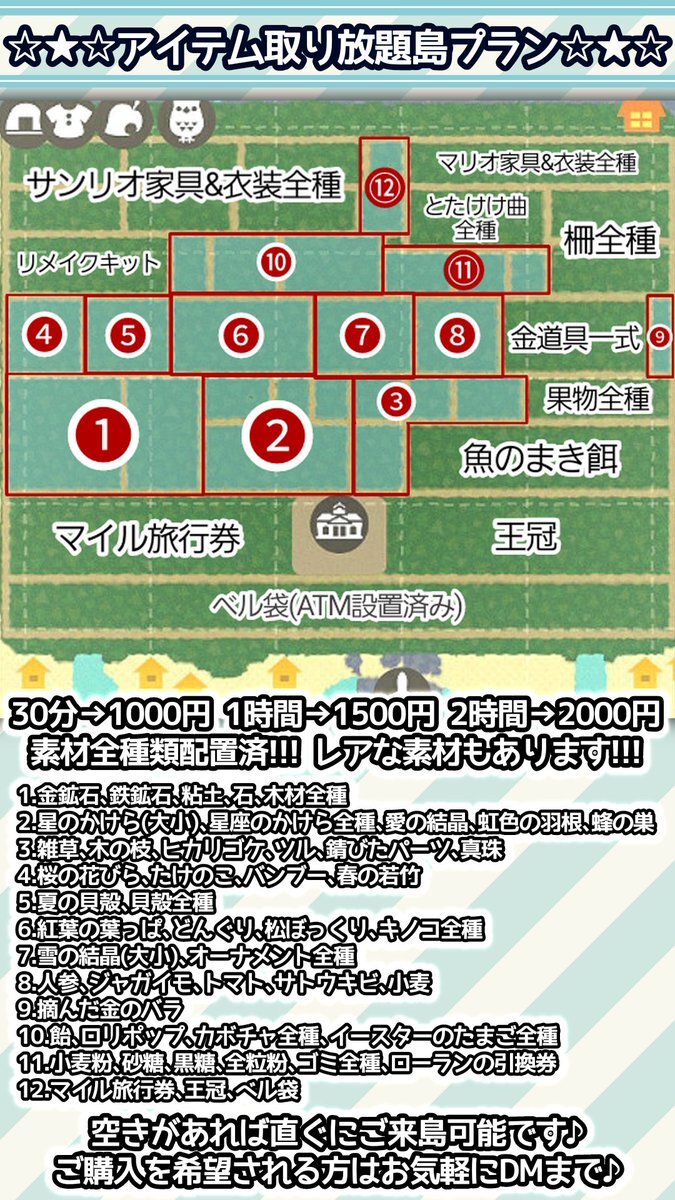 【👜取り放題プランもやってます】 ・DIYレシピ全922種 ・各種素材 ・たぬきち商店家具 ・金道具一式 ・フーコ星座家具 など 島に置いてあるものなら、 時間内なら好きなだけ持ち帰りOK◎ ⏰1時間:2,000円〜 ▶詳しくは画像からご確認を💌 あつ森 交換 譲求 カブ価 #あつ森交換 #あつ森無償の輪 pic.x.com/KouWLq2dOm