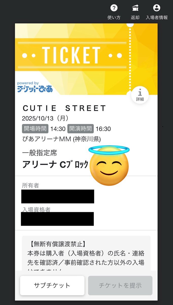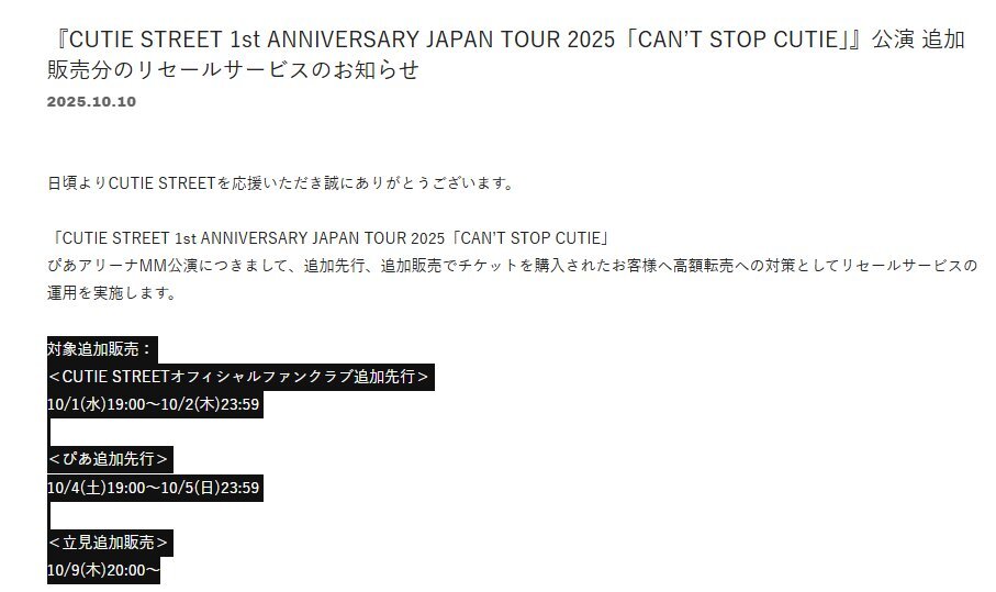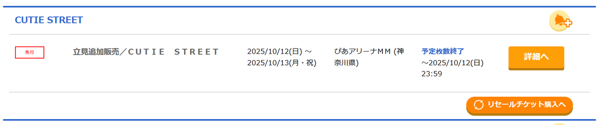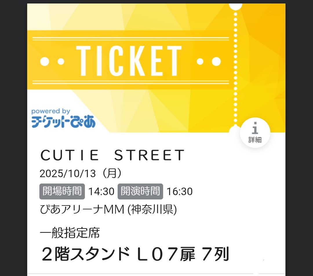 CUTIESTREET 全国ツアー 10/12,13 ぴあアリーナに行きたい方 きゅーすとFCが80枚ほど カワラボFCが4枚 一般は0 今確認したら上記枚数リセール出てるので、 会員でない方は会員になって880円払えば🎫買えますだ。 🎫9,925円(🎫8.000+手1,045+会880) 2,3Fの一列目とかで観戦どう?? #きゅーすと pic.x.com/zyt3PSxF8P