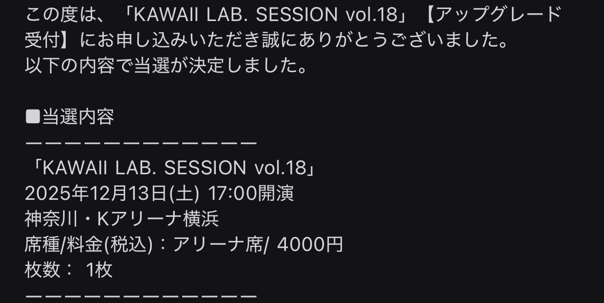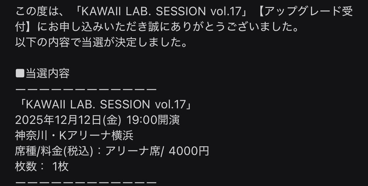 冬ラボセ両日アプグレ当選したわ 運営さん。全グルアリーナ席にて練り歩きお願いいたします。 #カワラボ #KAWAIILAB #ふるっぱー #きゃんちゅー #すいすて #きゅーすと #ASOBISYSTEM #アソビシステム
