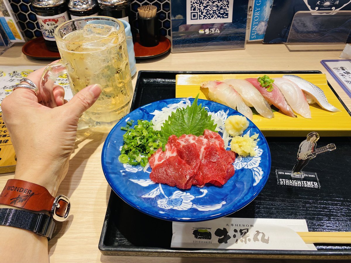 熊本駅肥後よかモン市場にて♡ 明日の #CAMPROCK に乾杯 🍻 #馬刺し #平日のみのハッピーアワーセット #最高 #抹茶5% #お茶の泉園 #たいぎゃうまかば〜い #ばりうま♡🍦 #電波なくて #テイクアウト #ホテルのコーヒーとアイス #泰斗は飲まない #多分 明日楽しみにしています💕🎸 #CAMPROCK2025 pic.x.com/ssv4chNdCf