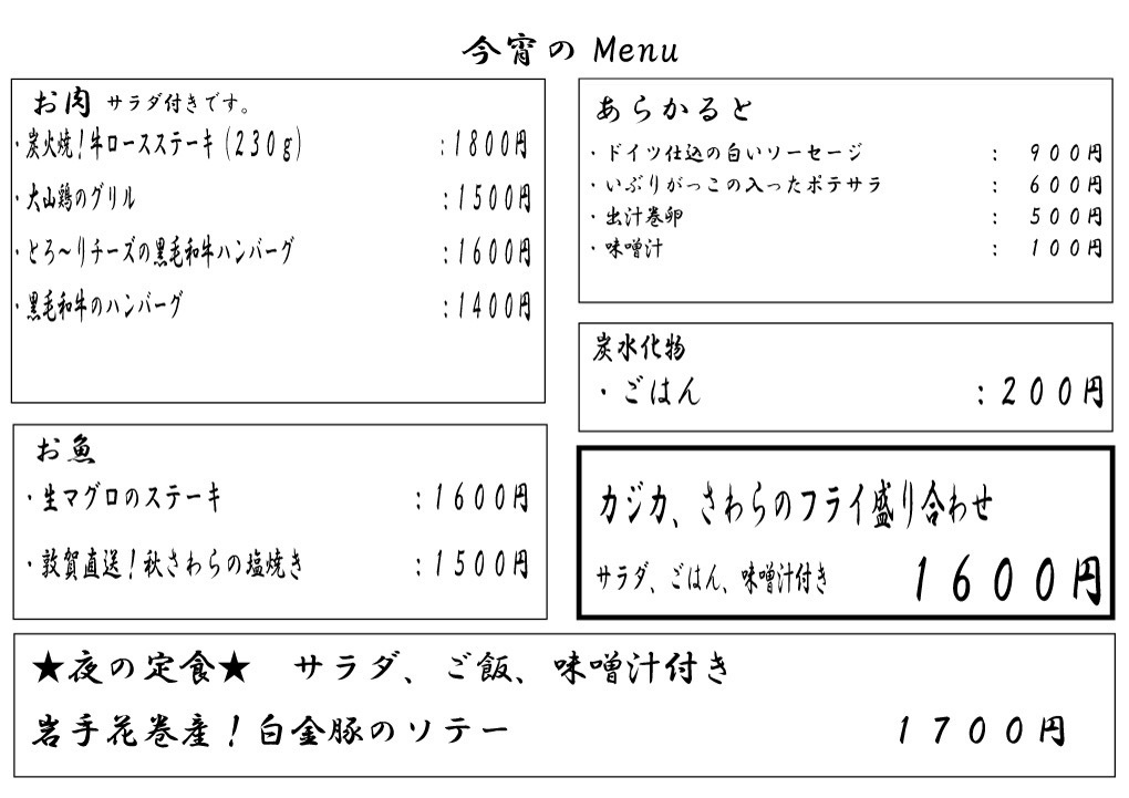 【営業時間について】 (月曜~土曜日) 昼:11時~14時半 夜:17時~23時 (定休日) 日曜日(事前予約ありの場合は営業。人数条件あり。) 電話:06-6944-5288(予約可) 座席数:最大60席 *食べ放題・飲み放題等、コース料理ございます。 *持ち帰り・弁当専用メニューございます。