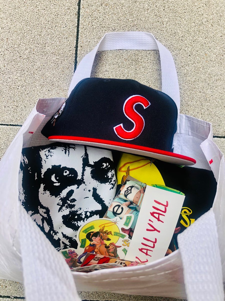 土曜日お店の方で買った物 Sロゴ刺繍もツートンなのね コレはなかなかいい お犬様のTシャツ通販で買った黒の方いらなくなっちゃったな… というかステッカー死ぬほど入っててビビるわ笑 #supreme #シュプリーム #NEWERA #ニューエラ #天国から来たわんちゃん #Tシャツ #エクソシスト #ロンT #原宿 pic.x.com/6fl0vawGL3