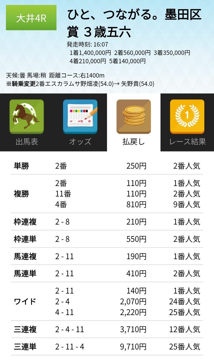 #大井競馬4R #エスカラムサ さん、1着✨お名前間違えていてごめんね💦 #初出走 #サトノビーツ さん、2着✨ #サブノルアナ さん、3着おめでとうございます- ̀͏̗🩷 ́͏̖- #結果💐 #払い戻し pic.x.com/cQo17fRBQx