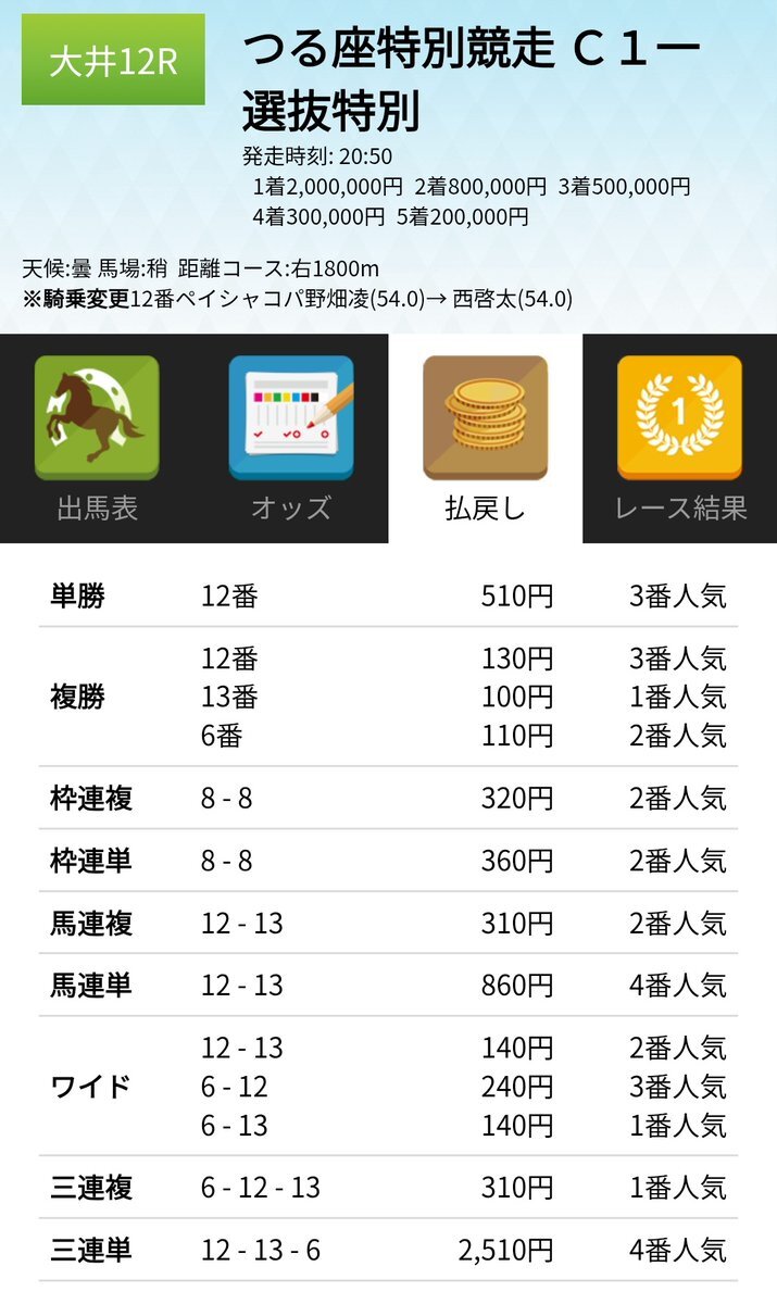#大井競馬12R #つる座特別 # #ペイシャコパ ちゃん🥰地方初勝利おめでとうございます- ̀͏̗🩷 ́͏̖-︎✌🏻 ̖́- #結果💐 #払い戻し pic.x.com/SIR41Nmtp7