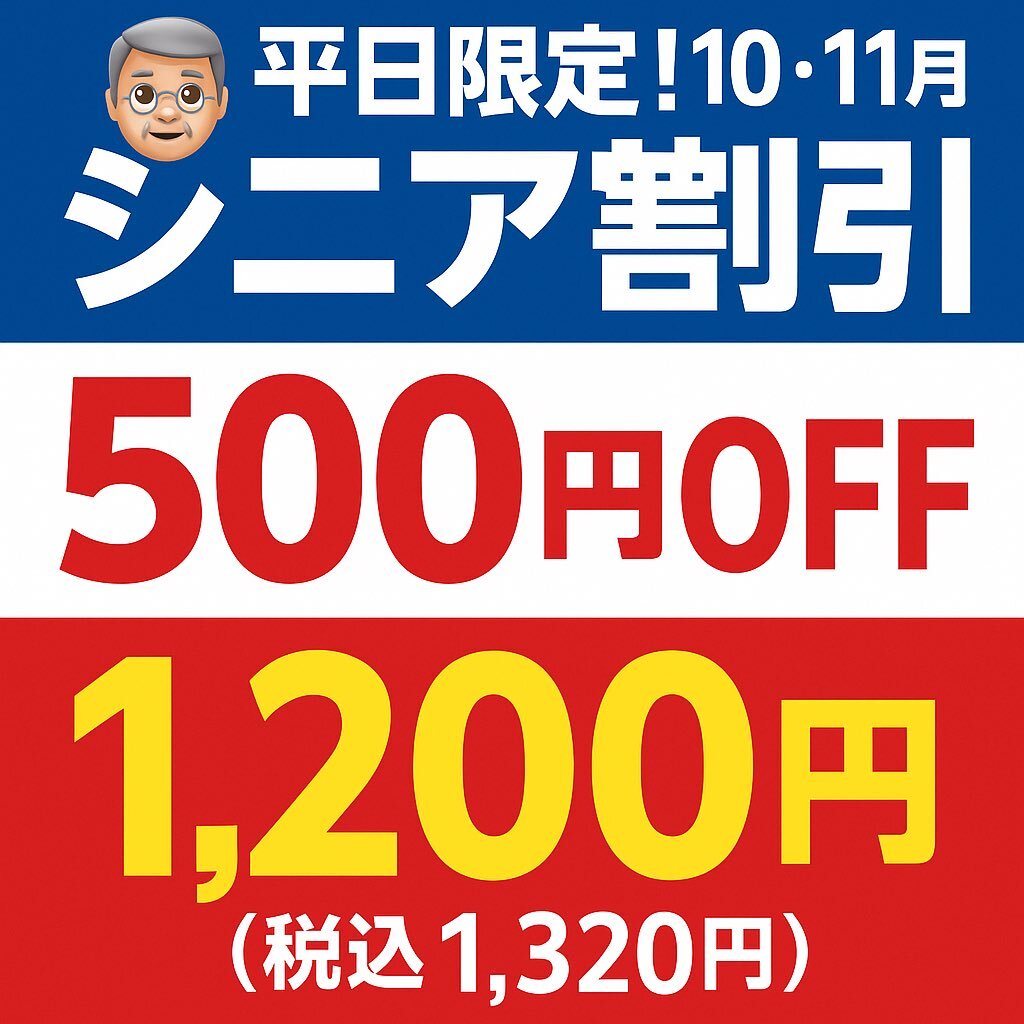 【平日限定シニア割引】 65歳以上の新規のお客様は500円OFF! 通常1,700円→1,200円(税込1,320円) 駅から徒歩1分、短時間で清潔感を整えられます。 #シニア割引 #本八幡 #メンズカット pic.x.com/UzEWl3dMKU