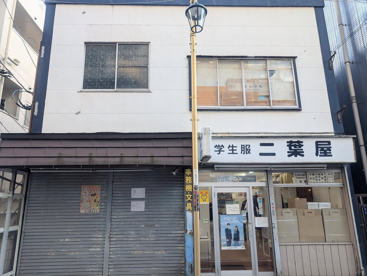 本八幡の南八幡商店会より「二葉屋」 学生服を扱う店も年々減ってきてる お隣の文具店には閉店のお知らせの張り紙があり、少し寂しい気持ちになる #本八幡 #レトロスポット巡り #昭和レトロ pic.x.com/d1B7UySsQa