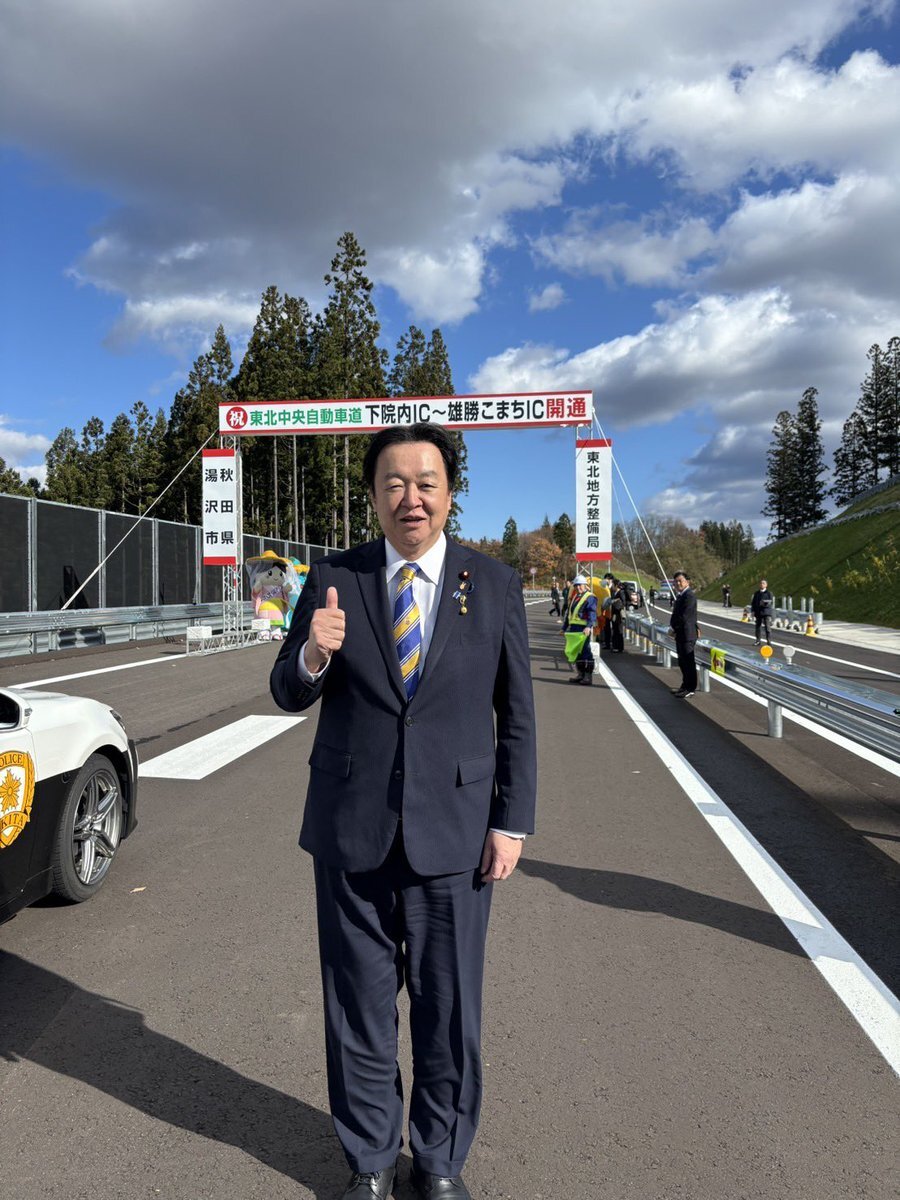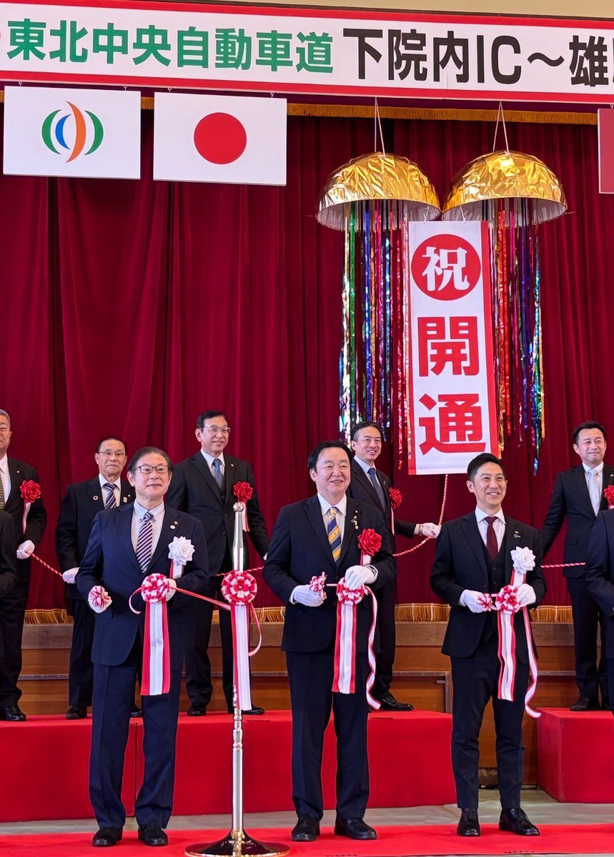 東北中央道〈下院内IC〜雄勝こまちIC〉横堀道路区間の開通式典でお祝いを述べました。 秋田の玄関口・湯沢市の流通・観光・交流が大きく前進。 県境の残り約16kmの整備も国政から全力で応援します。 関係者、地権者の皆さまのご協力に心より感謝申し上げます。 #湯沢 #東北中央道 #高速道路開通 pic.x.com/a8VnIGPwB5