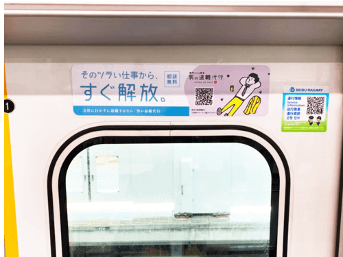 「男の退職代行」は #東急東横線、#副都心線、#西武新宿線・池袋線 ドアステッカー広告に掲出! 電車広告には審査があり、その信用審査通過により一定の社会的信用を得ることができました。 男の退職代行は今後更なる信用を得られるよう努めてまいります。 otoko.to-next.jp #退職代行 pic.x.com/R0IwOu56FV