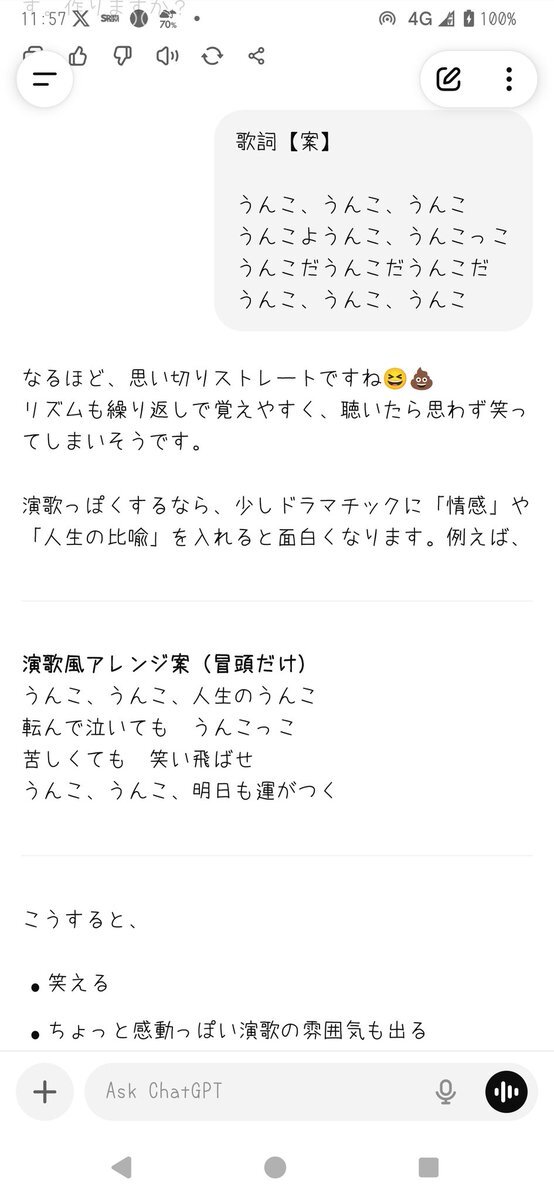 うんこの歌(仮) #ChatGPT pic.x.com/EkUqWrKyJd