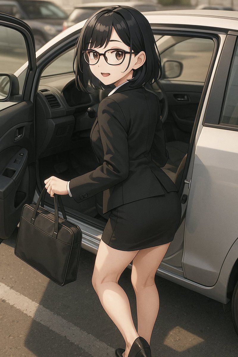 #ミニスカートの日 だそうでこの日だけスカートに そういえば昨日は外回り #ChatGPT って何故か右ハンドル車にしてこれない苦肉の策で助手席より荷物出したシーンにした #AI絵日記 pic.x.com/zFyzeodzOp