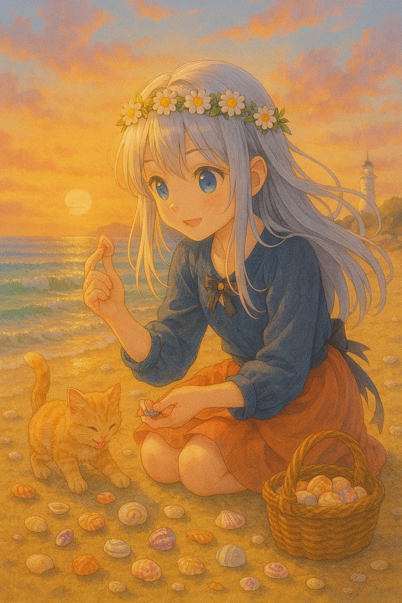 おはよーございます✨ 貝殻拾いの朝🐚🌊🌅🐱 #AIイラスト #ChatGPT pic.x.com/1TkPObx5Bf