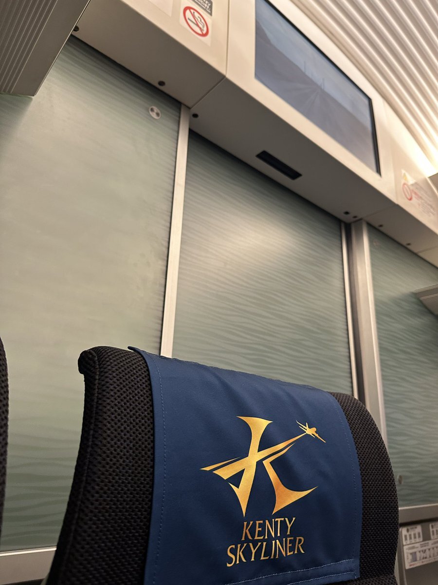 飛行機には乗らないけれど、仕事で成田空港に向かうスカイライナーがKENTY SKYLINERだった。朝っぱらからケンティの旅へと甘く誘う車内放送は素敵だが、もう少しエアコンを効かせてくれるともっと素敵。(気温は低いが湿度は高い) #Kentyskyliner #Skyliner pic.x.com/bxzg2l30Jw