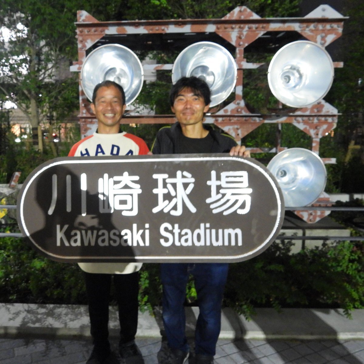 つい最近まで、富士通スタジアム川崎近くの信号機に掲げられた【川崎球場】の看板と、かつての川崎球場の照明灯をバックに。 いつまでも、心の中に川崎球場⚾️ #ここだけ36年前の川崎球場 pic.x.com/UCPiAyL92n