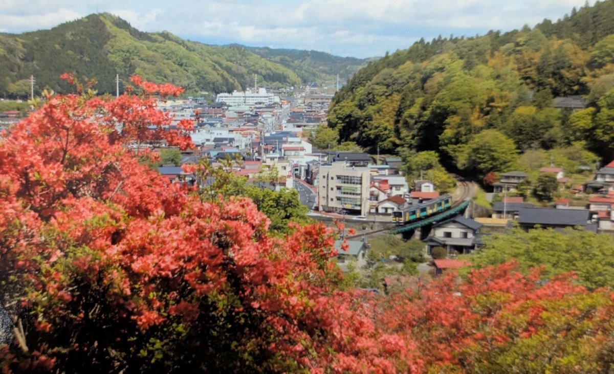 #みんなのカーブ写真見てみたい 塙町風呂山公園からの光景。 ヤマツツジと水郡線の列車。 pic.x.com/DQaerphnpT
