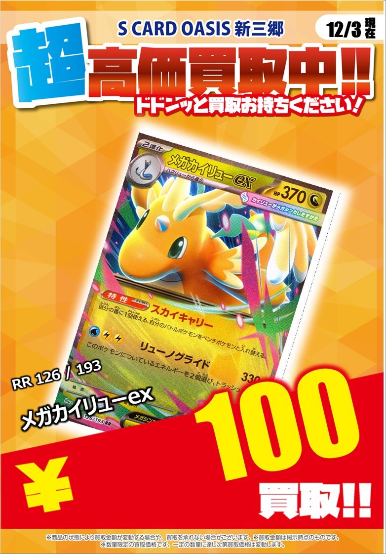 #ポケモンカードゲーム 最新弾 MEGAドリームex 収録 メガカイリューex【RR】の 現在の美品買取価格です🔥 沢山のお持ち込みお待ちしております✨️🌕 #SCO新三郷 #トレカ #カードゲーム #ららぽーと #ららぽーと新三郷 #新三郷 pic.x.com/nzM3dknTcM