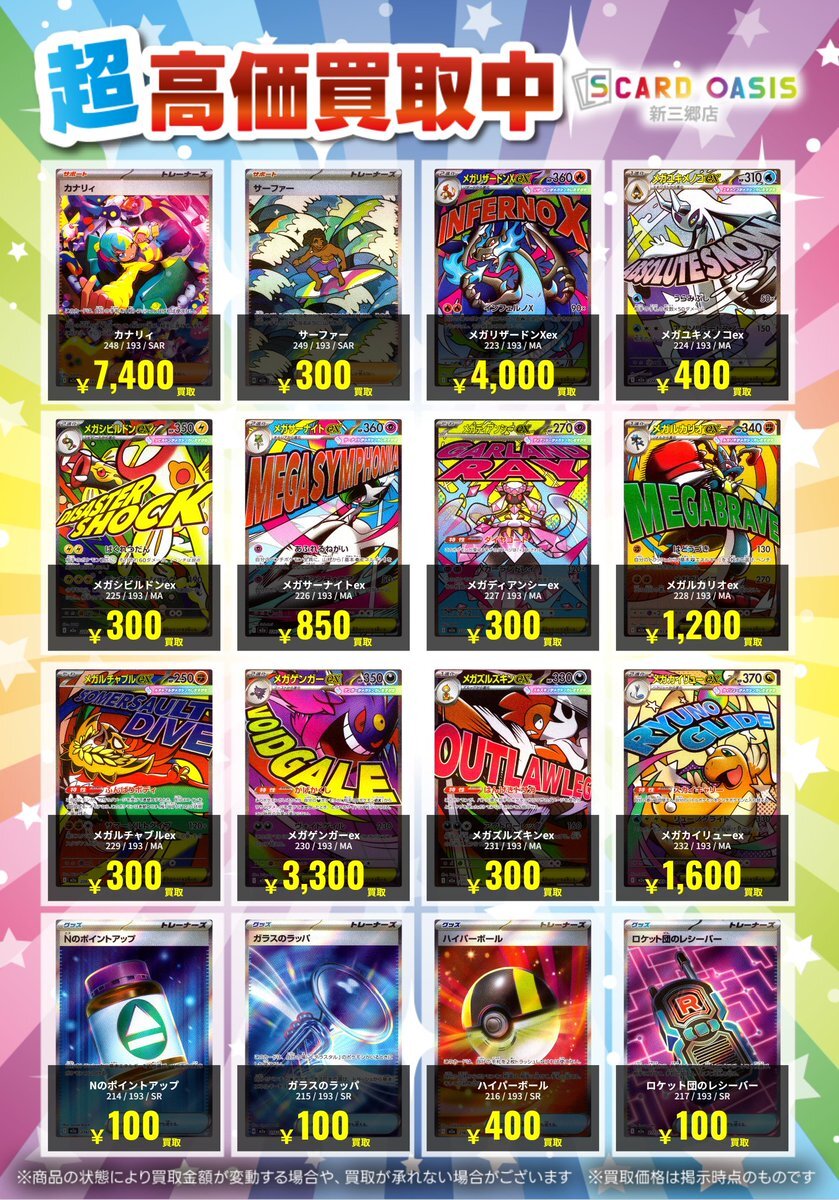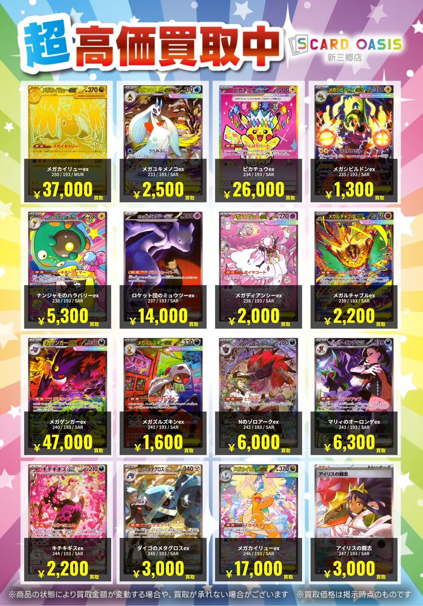 #ポケモンカードゲーム 最新弾 MEGAドリームex 現在の美品買取価格です🔥 お持ち込みお待ちしております✨️🌕 #SCO新三郷 #トレカ #カードゲーム #ららぽーと #ららぽーと新三郷 #新三郷 pic.x.com/R9hk6muVeP