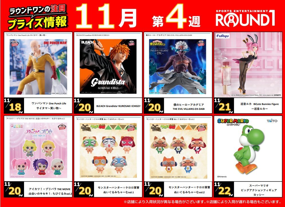 🌟🌟ラウンドワン最新プライズ情報🌟🌟 11月18日~11月25日登場予定 オススメプライズはこちら⬇️ #ケロロ軍曹 と #モンスターハンター の コラボマスコットが登場✨ ケロロ好きのお客様やアイルーが大好きなお客様は 是非GETして下さい🎵 ※導入状況は店舗により異なります