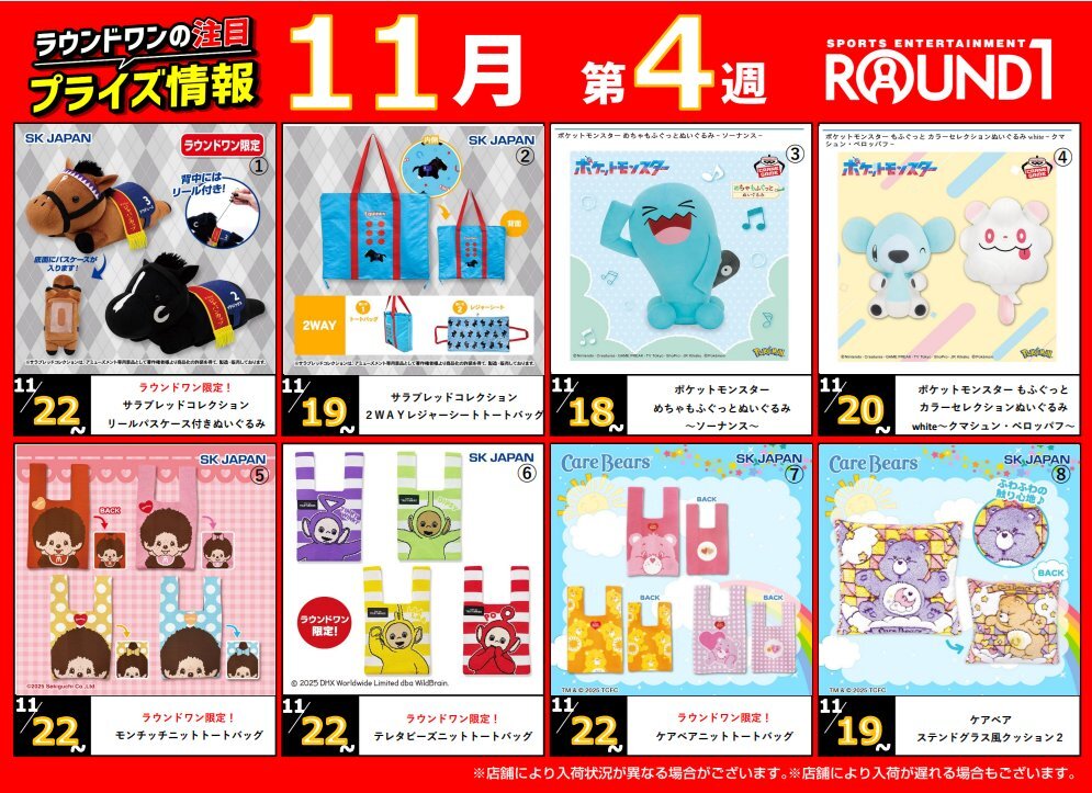 🌟ラウンドワン最新プライズ情報🌟🌟 11月18日~11月25日登場予定 オススメプライズはこちら⬇️ 大人気 #サラブレッドコレクション から 広げて使えばレジャーシートに大変身! #イクイノックス の 2WAYレジャーシートトートバッグが登場🏇 ※導入状況は店舗により異なります