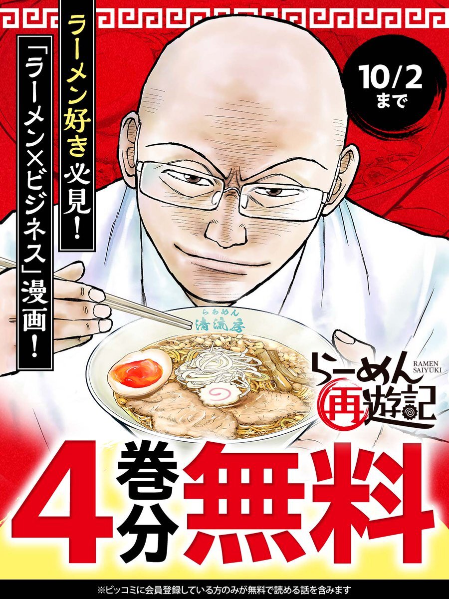 □─ ─ ─ ─ ─ ─ ─ ─ 4巻分無料キャンペーン開始! 10/2まで ─ ─ ─ ─ ─ ─ ─ ─□ ラーメン好き必見!「ラーメン×ビジネス」漫画! 🍜『#らーめん再遊記』 ▼今すぐ無料で読む bigcomics.jp/episodes/751ae… #久部緑郎 #河合単@KawaiTan#ビッコミ pic.x.com/PUCLhTyyu2