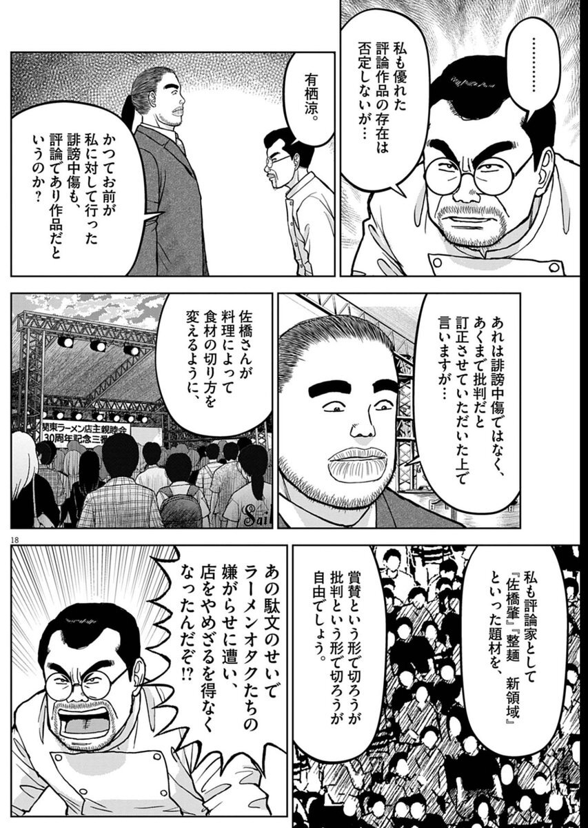 昔の品川店でのことで有栖さんが芹沢さんに因果を含めた時点で、佐橋さんとの対決で芹沢さんが絡んでくるのであろうことは予測できた。で、原田さんの時の「創作志向の袋小路」と同じ類の指摘が、この後なされるんじゃないかな...って感じています。 #らーめん再遊記