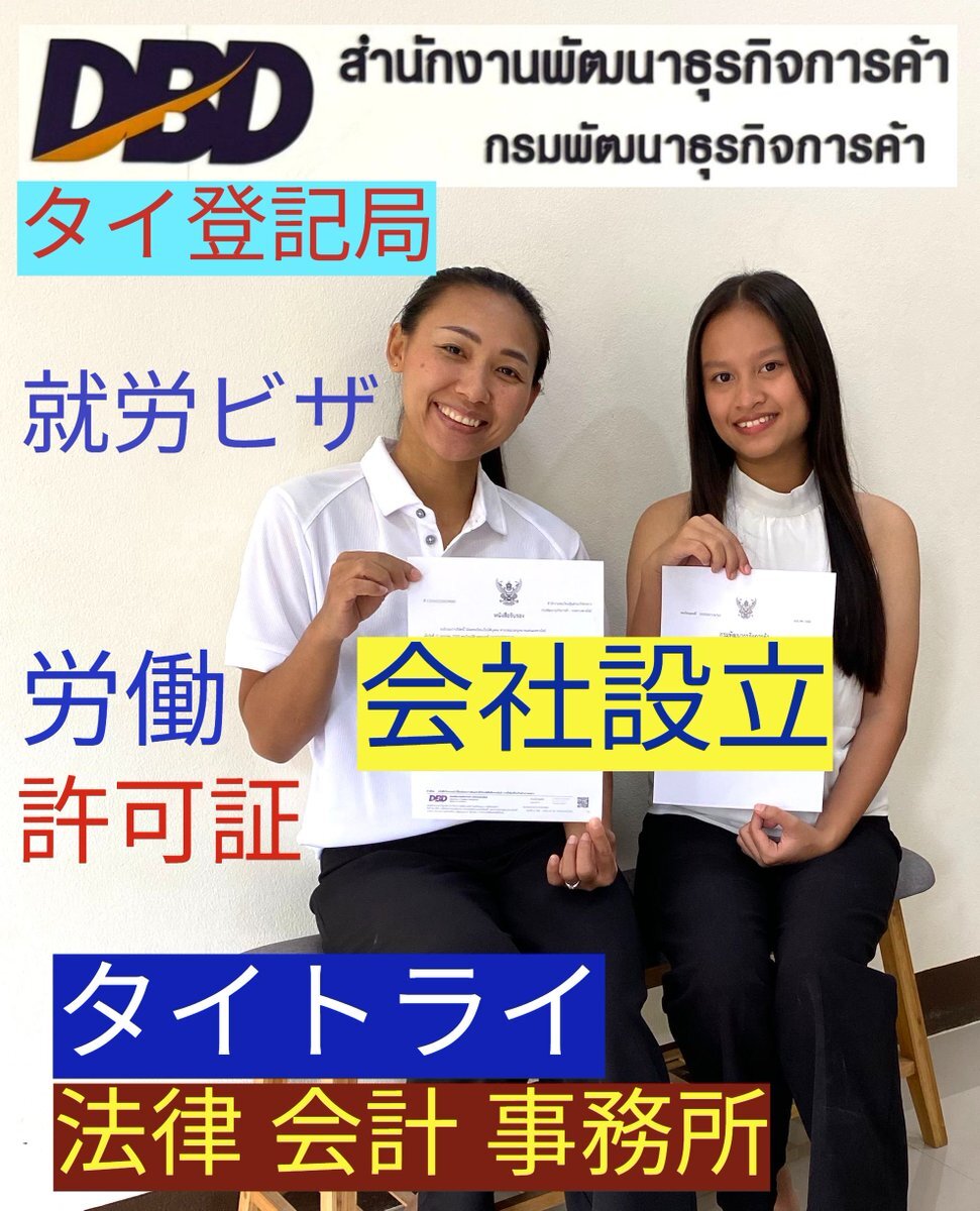 バンコク都の登記局DBDで、お客様の起業で会社設立登記代行を行いました。 #タイ会社設立 #タイ起業 #タイ飲食店開業 thailawacc.co.th/company/ #タイビザ #リタイアメントビザ #結婚ビザ thailawacc.co.th/visa/ #タイ人との国際結婚手続き thailawacc.co.th/marriage/ #タイ生活 #タイ移住 #タイ旅行 pic.x.com/FeeRpmwWp3